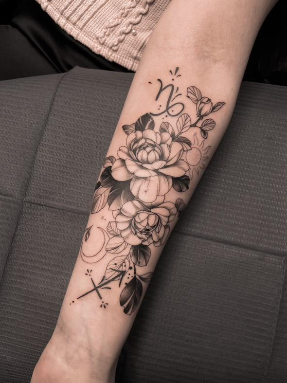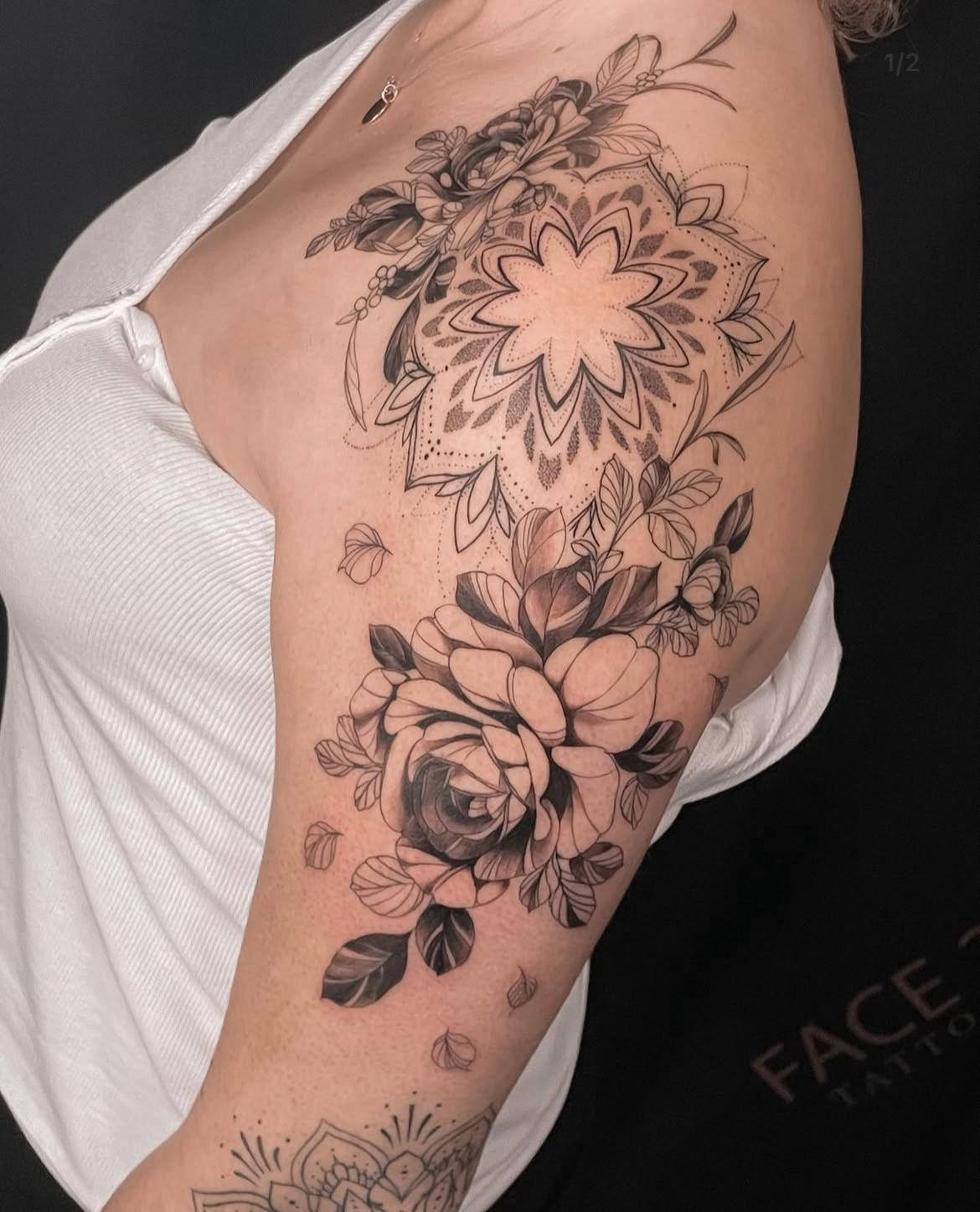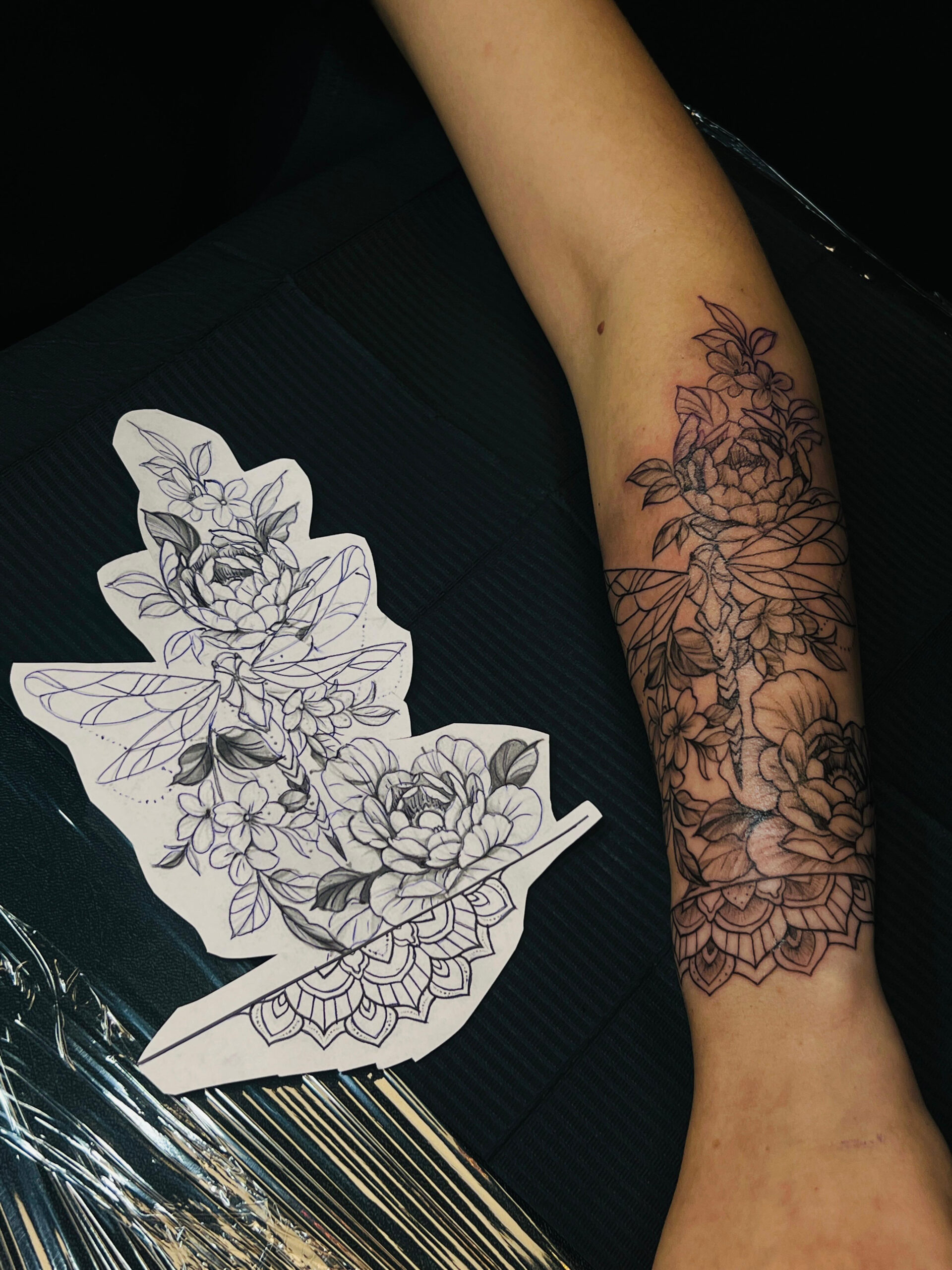 Meine Arbeiten stehen für Präzision, Struktur und Balance. Ich habe mich auf Fine Line, florale Motive, Mandalas und Dotwork spezialisiert – klare Linien, ruhige Formen und Details, die sitzen. Mir geht’s darum, Tattoos zu schaffen, die zeitlos wirken und zum Menschen passen, nicht nur zum Moment. Jedes Motiv entsteht mit Fokus, sauberer Technik und einem Auge fürs Wesentliche.